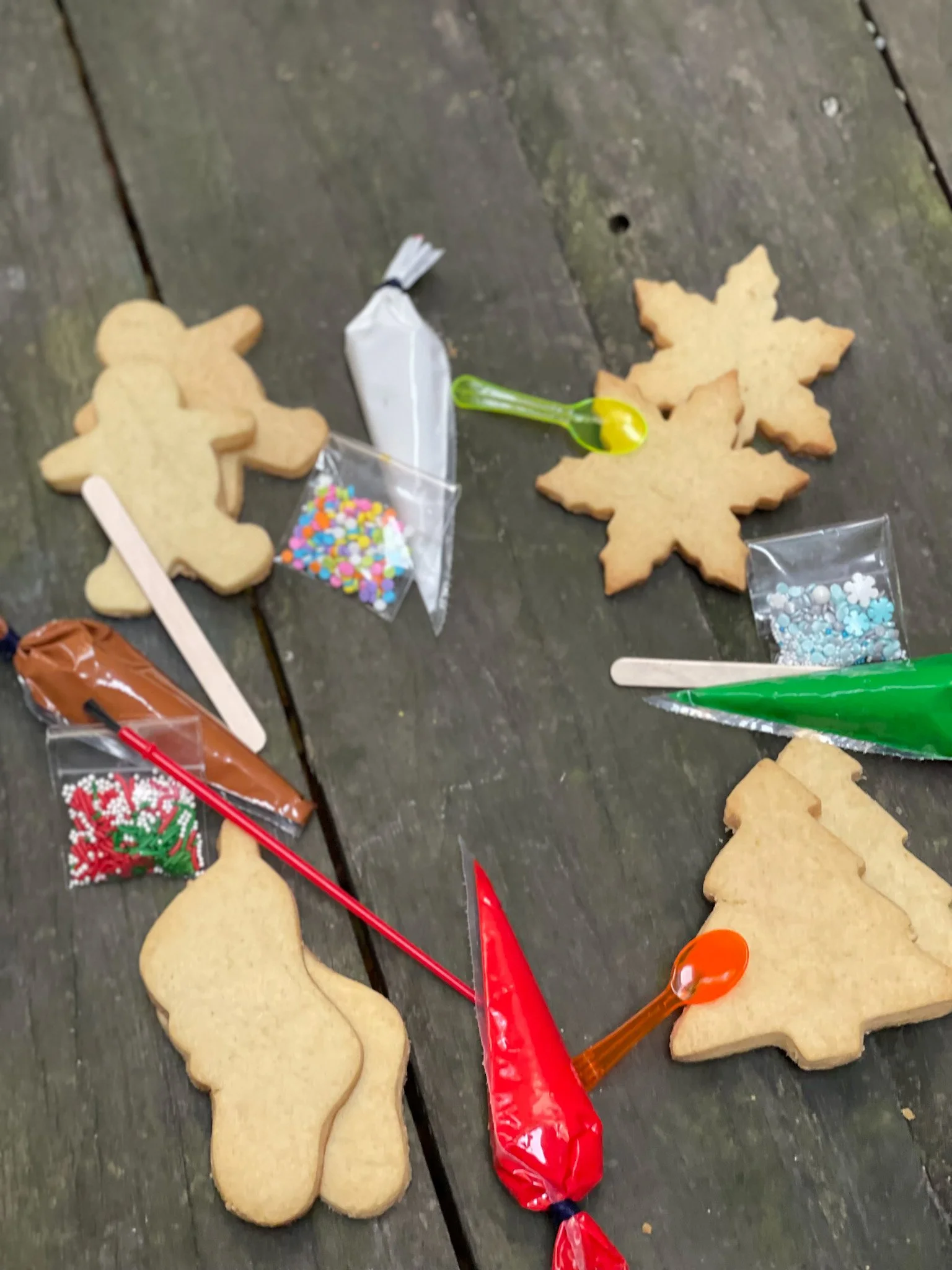 Our Decorated Winter Sugar Cookies Are available in 2 flavors our Sugar cookie and our gingerbread both iced with our Vanilla royal icing in 4 fun Christmas shapes (Snow Hat, Mitten, Hot Chocolate Cup, Snowman)
